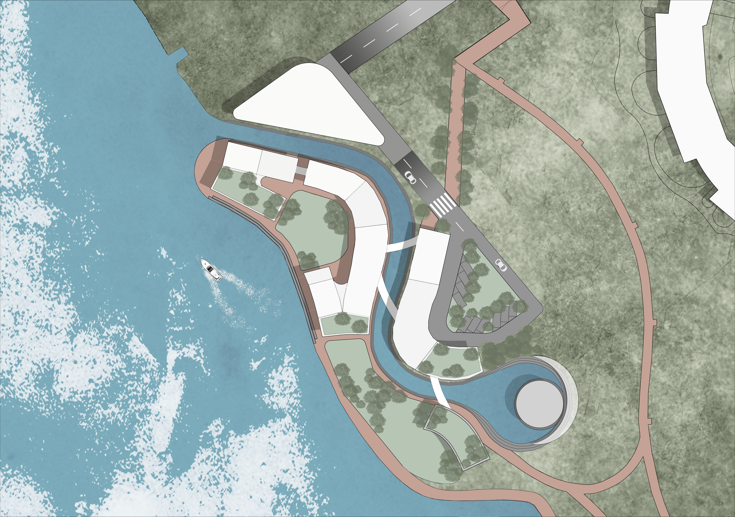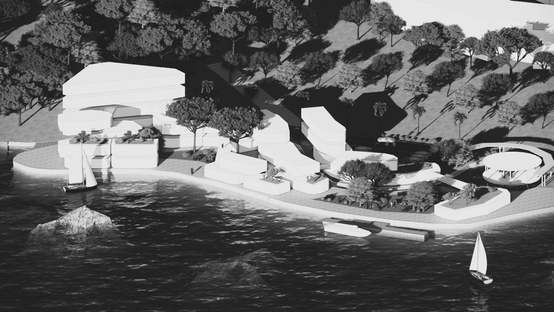 Cyber-Lagoon is an incubation hub designed to foster innovation and collaboration through water-human interaction in Cyberport. With a focus on sustainability and seamless integration with the surrounding environment, Cyber-Lagoon offers an unparalleled experience for both work and leisure. By complementing the seaside location, we’ve created a truly unique and dynamic space. We prioritized visual corridors, preserving the view from the HKU business school. The site features a gradual transition from high to low-rise buildings, ending at the amphitheater at the lowest level. The axis of the arcade and HKU helped create a dramatic curve that enhances the overall aesthetic.