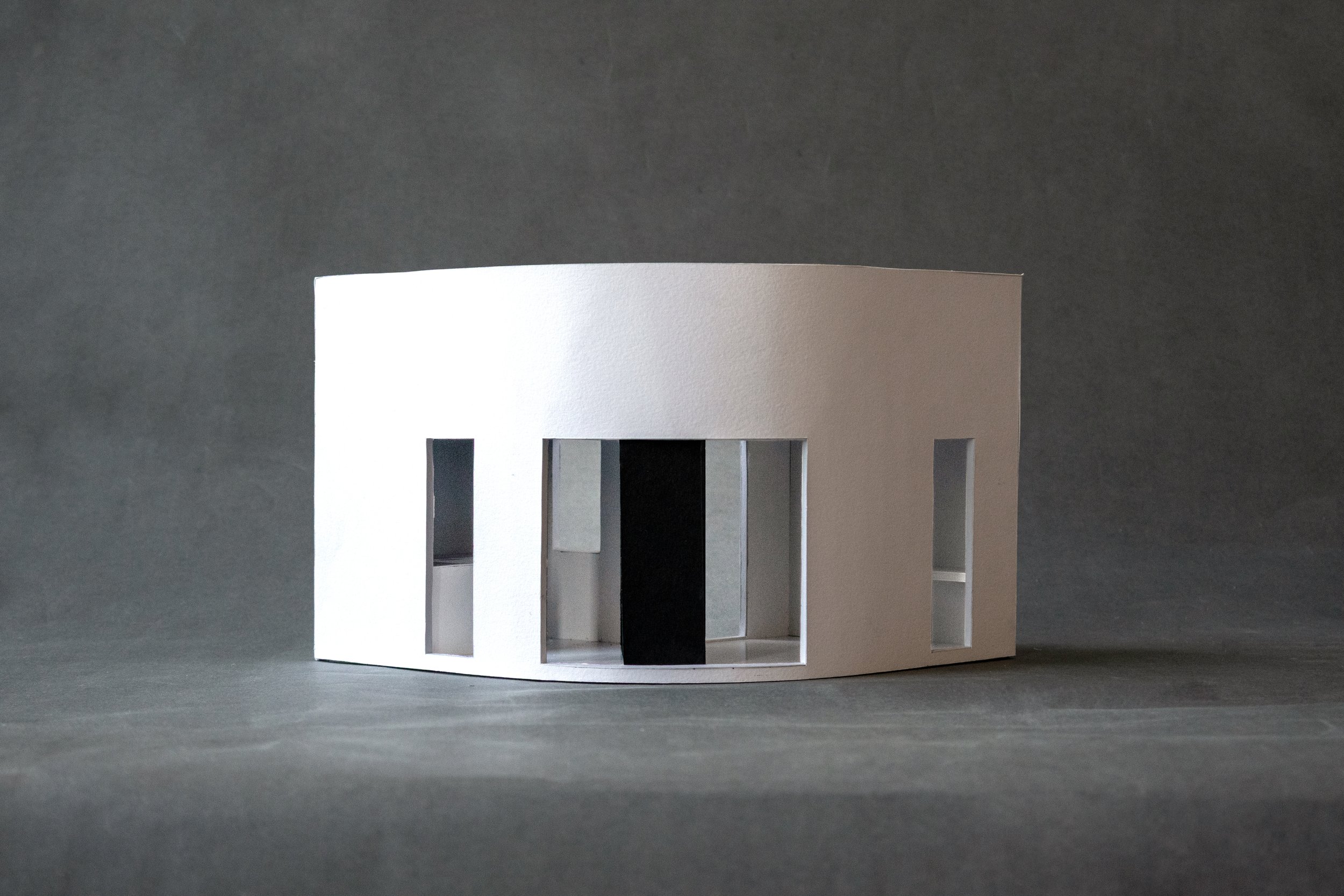 This housing establishes itself as a private dwelling without physical barriers through transitions, while offering moments of communal connection through lines of sight and spatial overlap. At the entrance, the street facade is largely solid, punctuated only by small square windows marking the bedrooms. Once this initial threshold of the solid entrance is crossed, the space opens into a large communal courtyard, where the building’s curved form becomes visible. The second threshold is the individual unit entrance, accessed by passing the main glass door to reach private residential courtyards. Without physical barriers between zones, circulation remains fluid and uninterrupted.